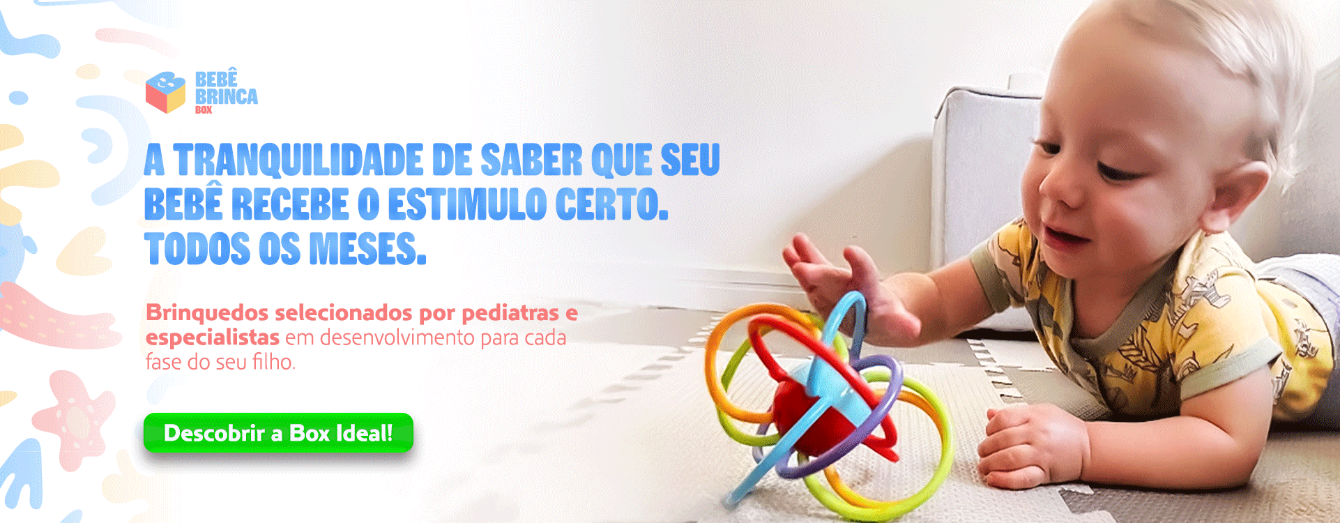 A cada mês é enviada uma caixa cheia de brinquedos para divertir e estimular seu bebê. Ao todo, são 12 caixas disponíveis, mas você pode assinar o plano a partir do mês que desejar.